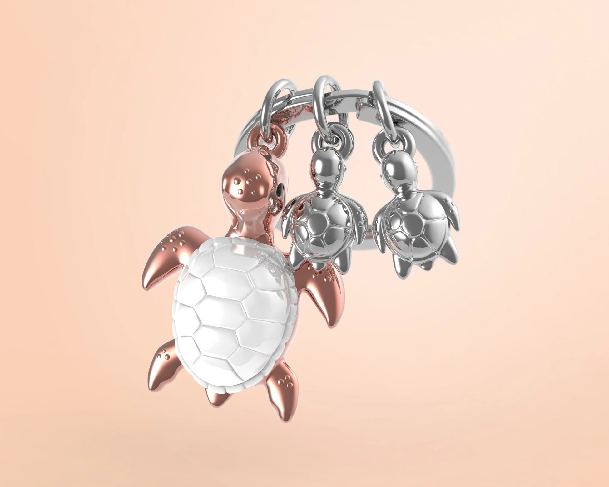 Metalmorphose® iki yavru kaplumbağa detaylı kaplumbağa anahtarlık anahtarlık - Özel Kutu Ambalaj - Tescilli tasarım