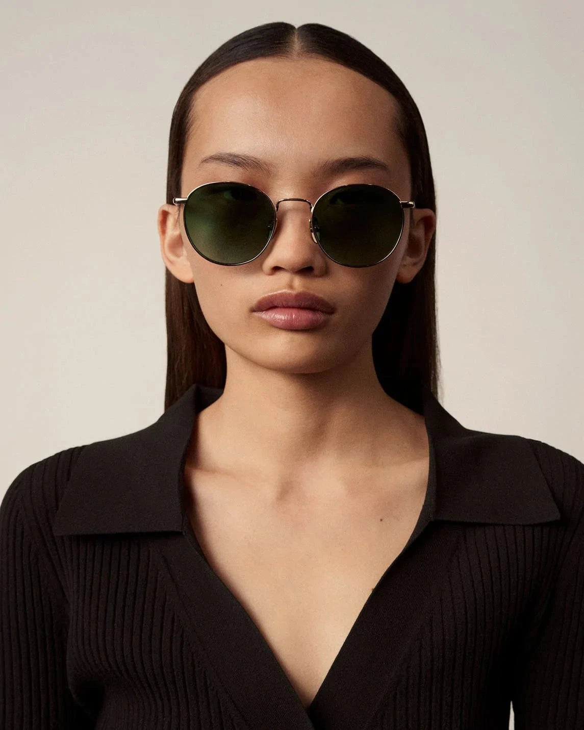 Bu eğrisel çerçeve; mükemmel yumuşak ve yuvarlak şekli oluşturur. Çerçeveler; yumuşak altın renginde paslanmaz çelikten ve sarı renkli bir lensten el yapımıdır.