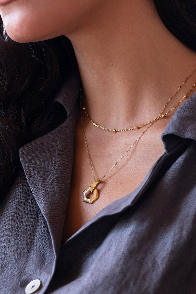 • Kolye Ucu Şekli: Altıgen bağlantı halkaları