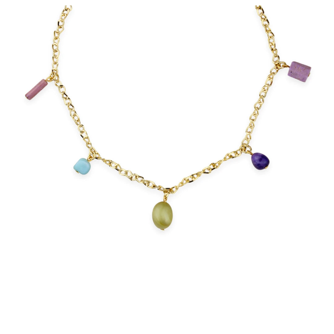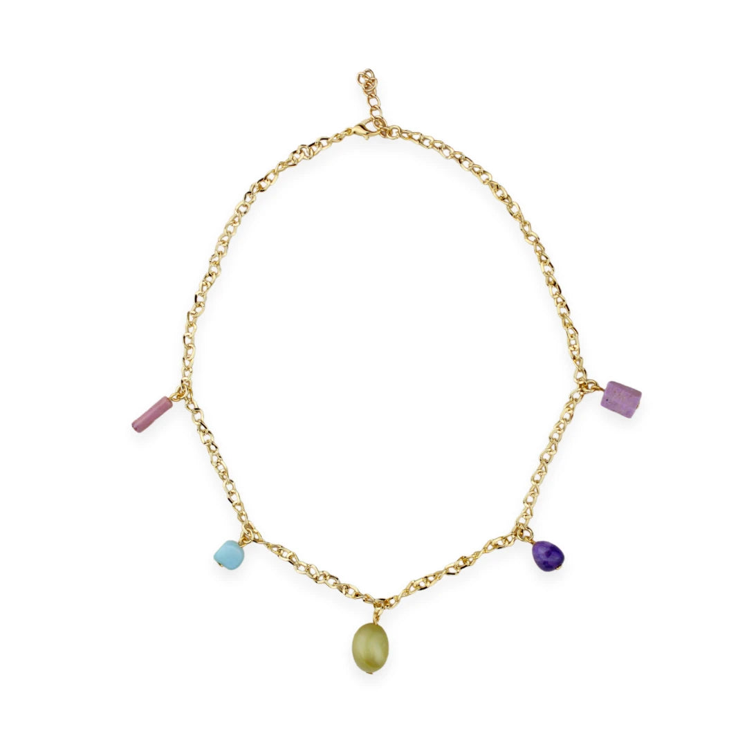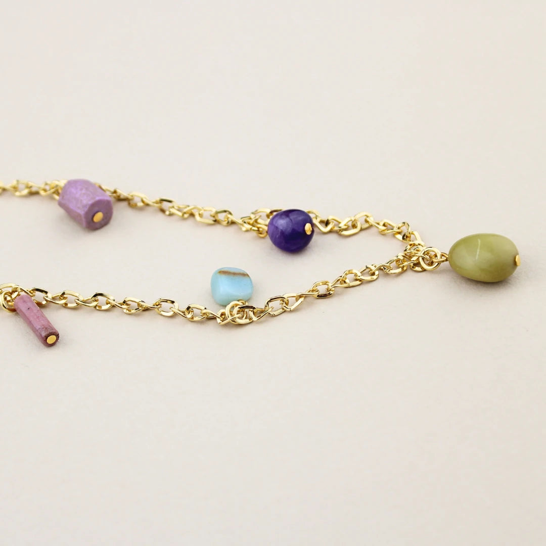 22k Mikron Altın Kaplama 4. Boy Zincir, Rodokrozit, Amazonit, Yeşil Garnet, Ametist, Purpurit Taşı