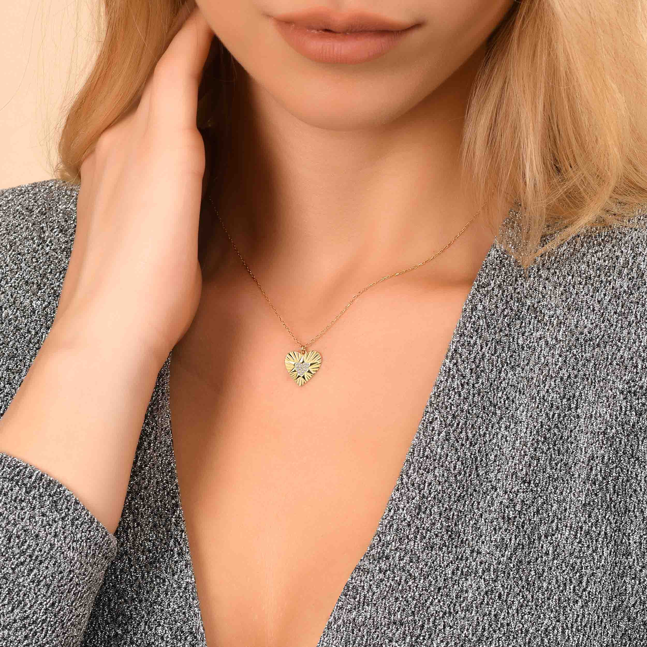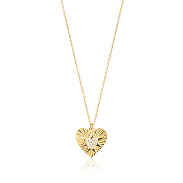 Pia&Co Mtia Beyaz Taşlı Kalp Altın Kaplam Gümüş Kolye