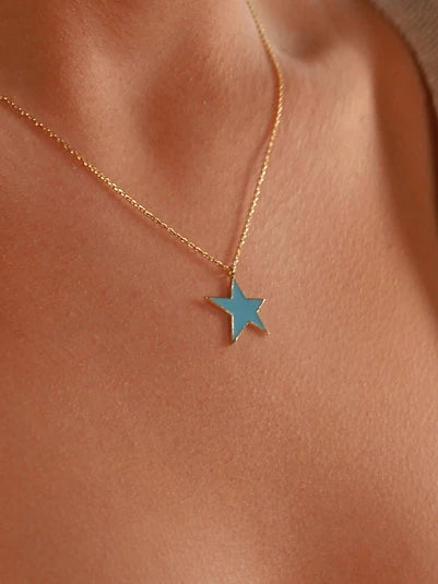 925 ayar gümüş gold renk, altın kaplama mineli mavi yıldız kolye