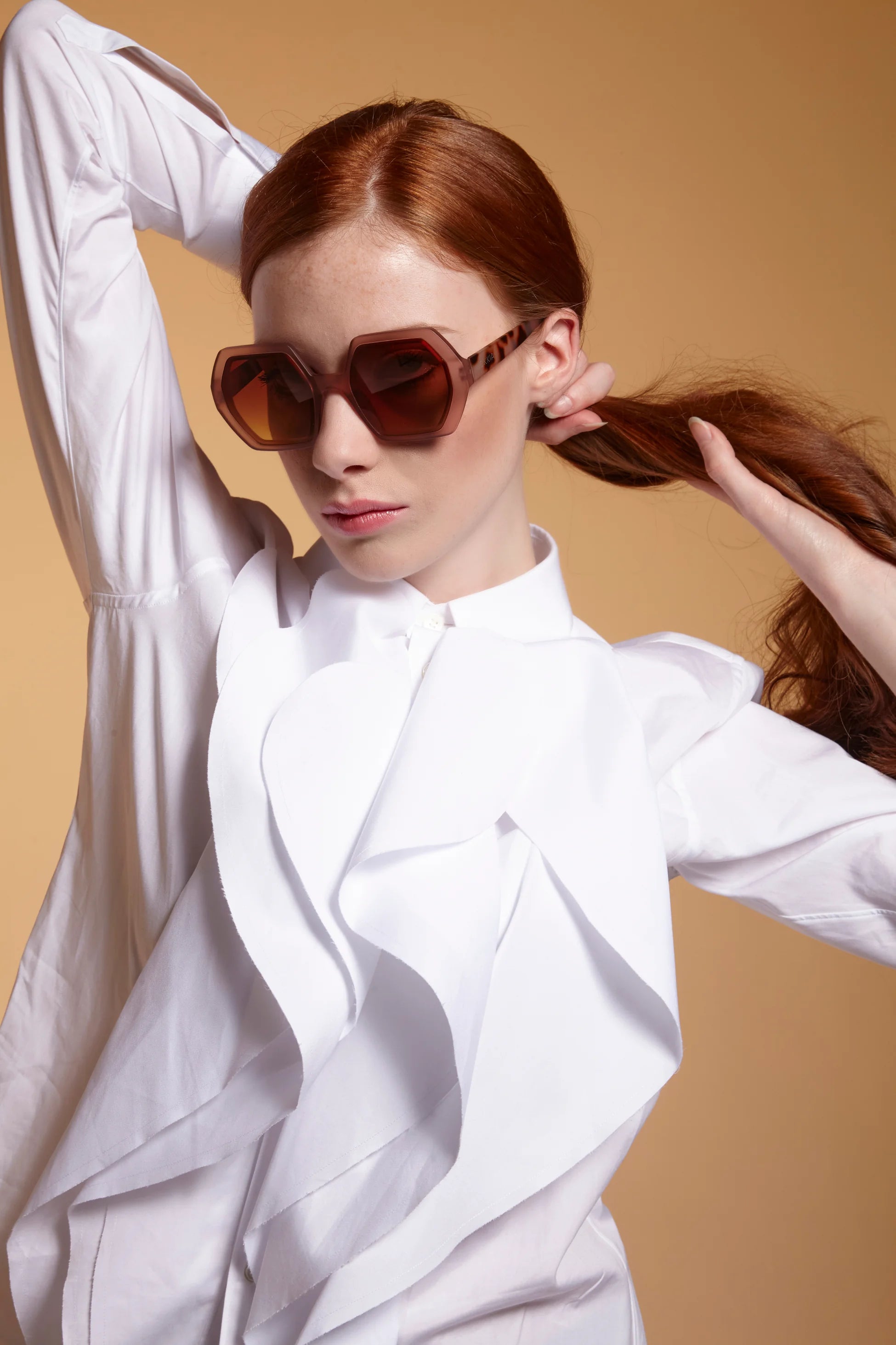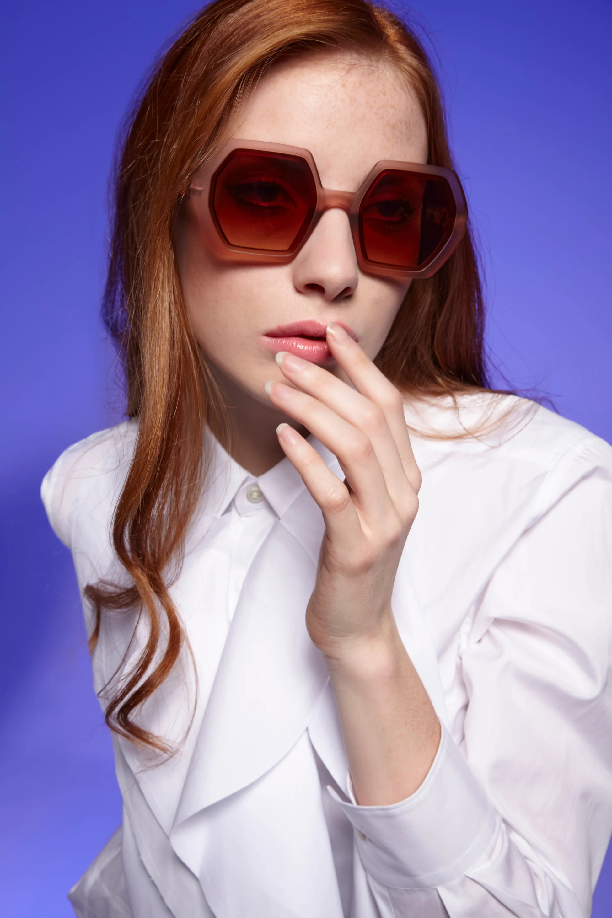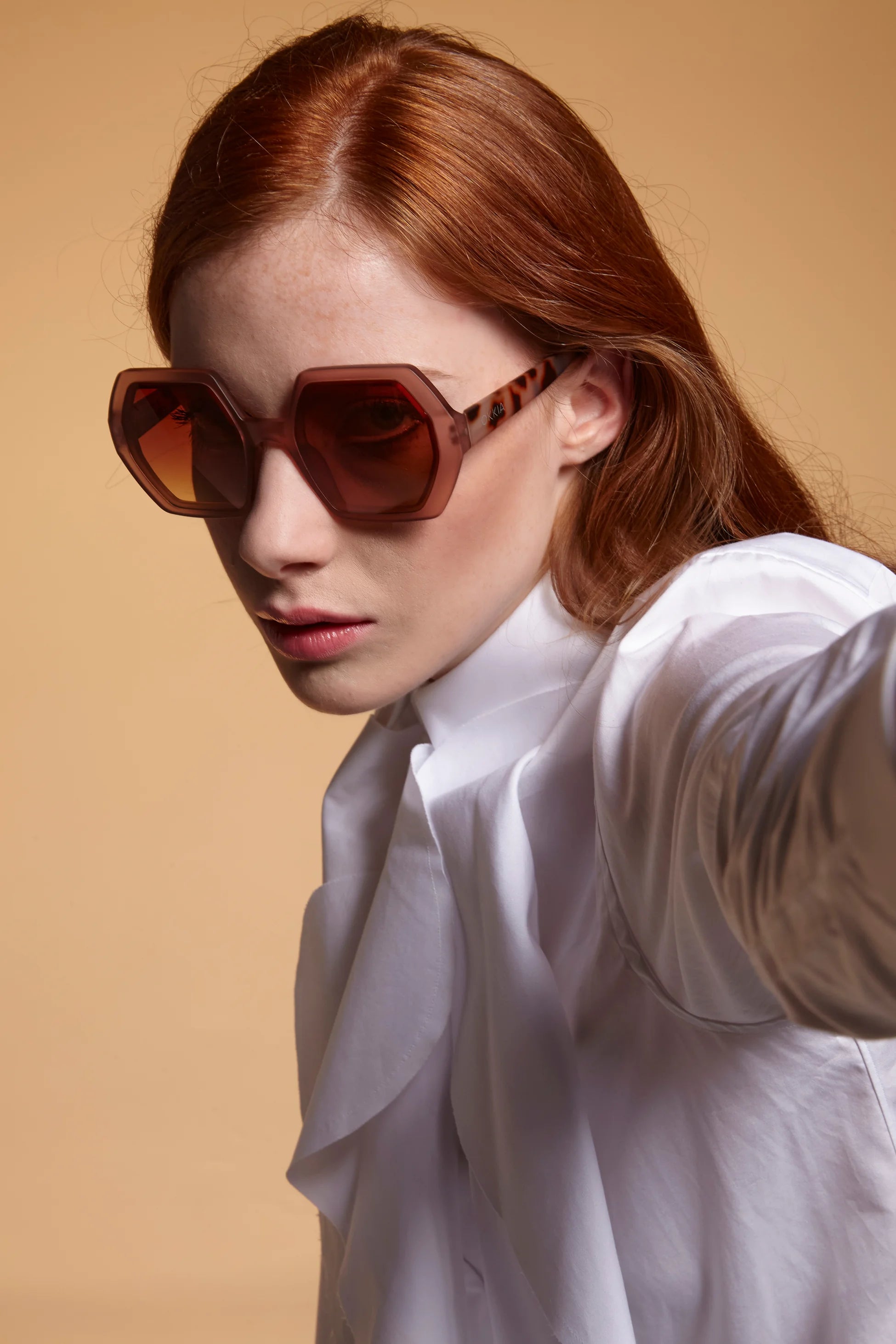 Okkia Emma Big Hexagonal Güneş Gözlüğü Havana Pembesi