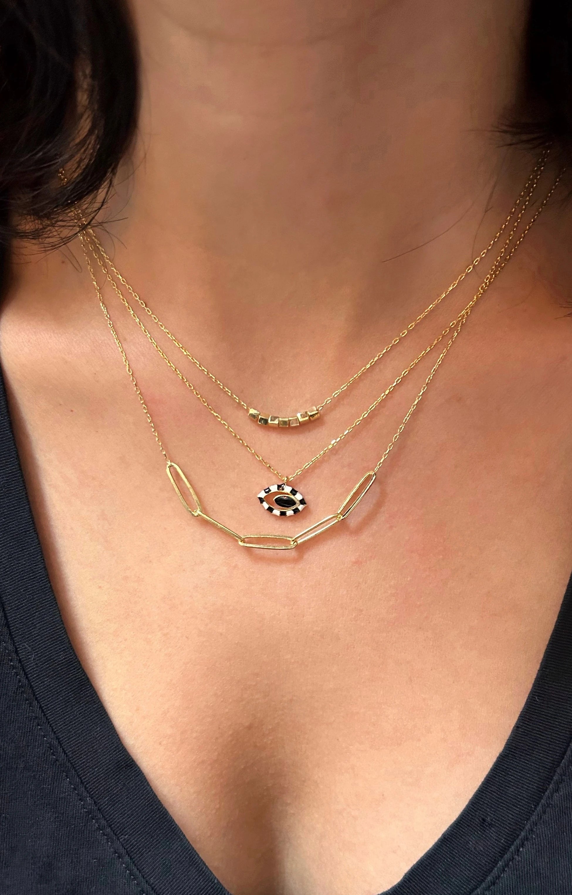 Pia&Co Dora Siyah ve Beyaz Mineli Altın Kaplama Gümüş Kolye