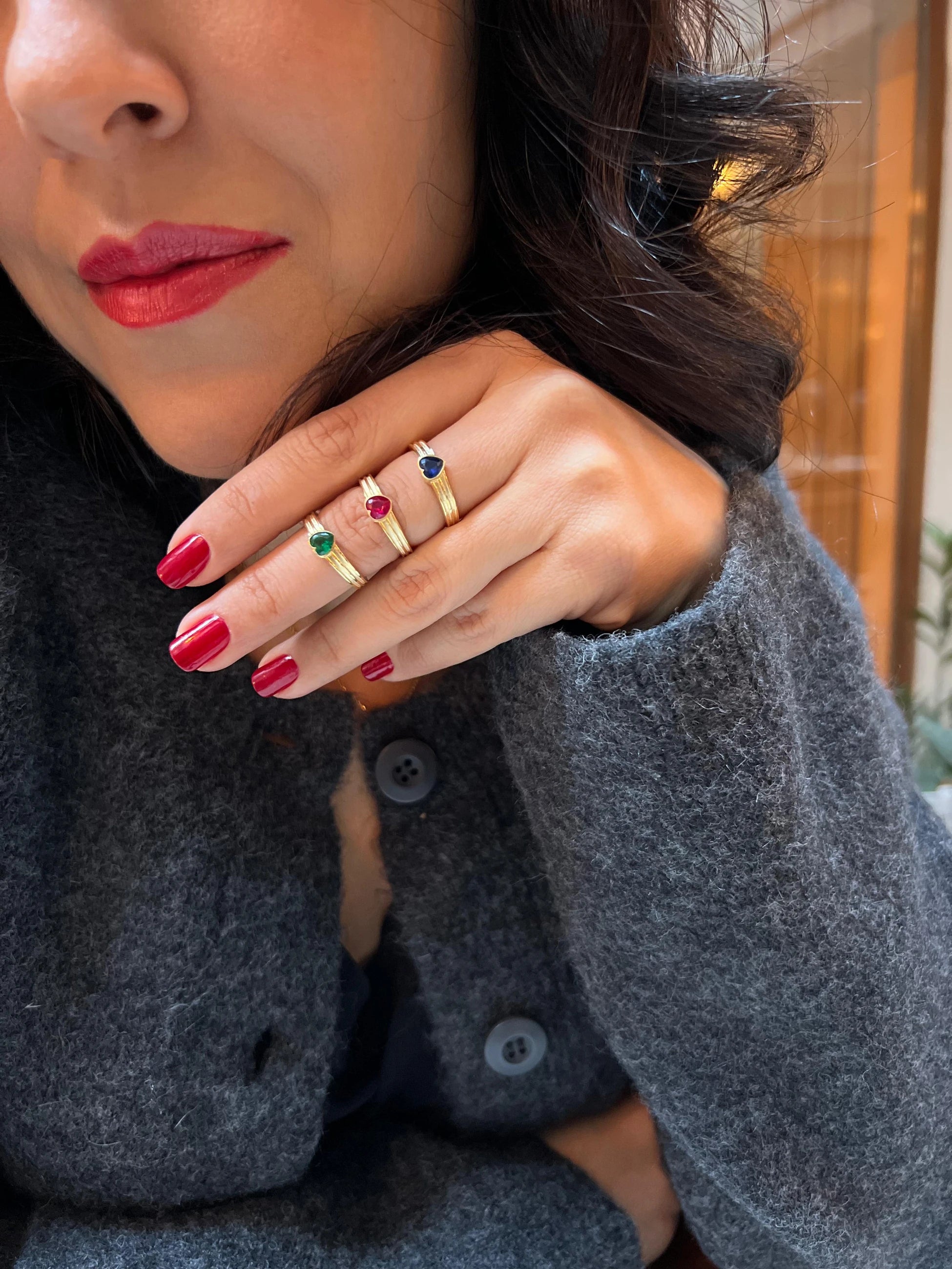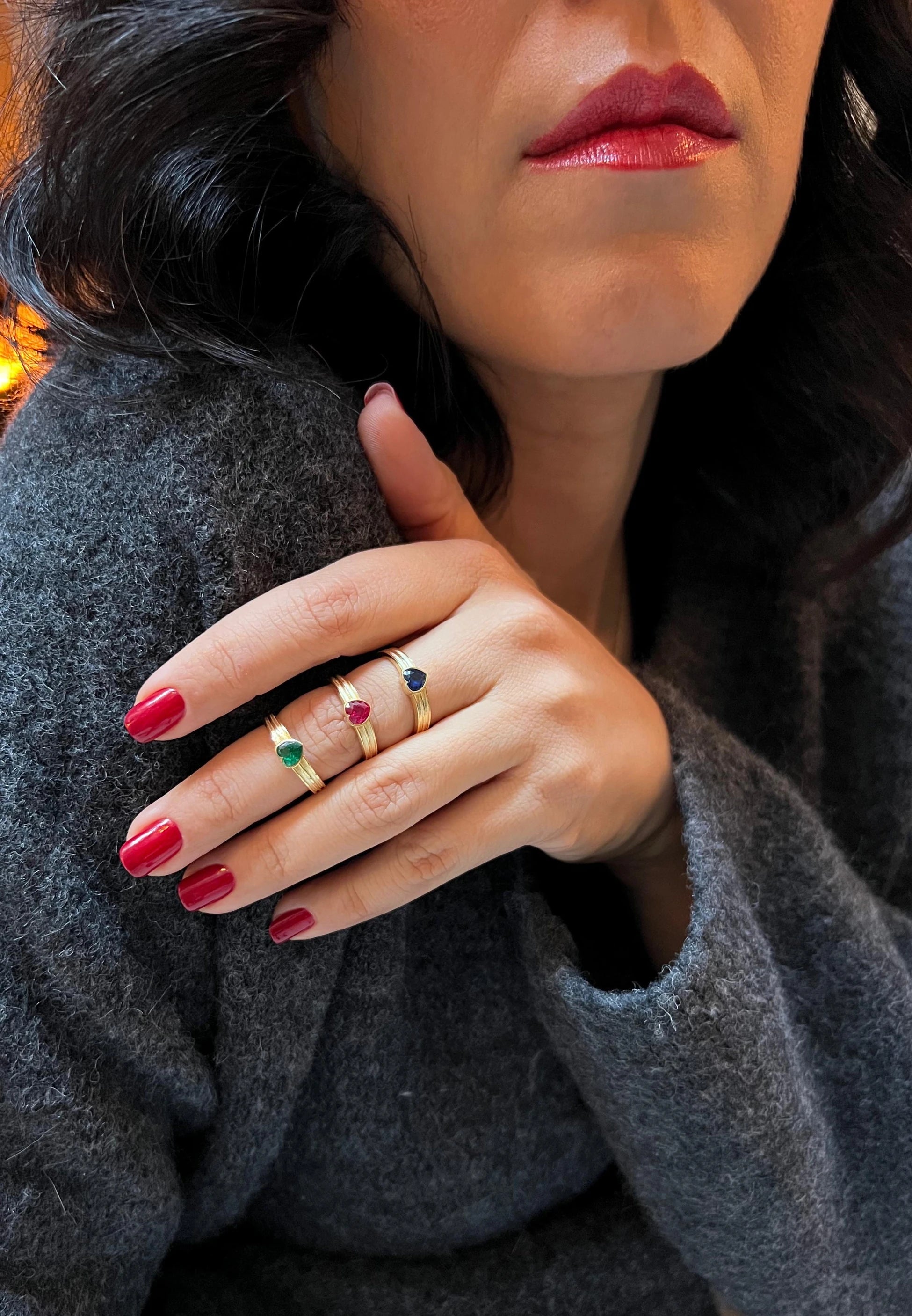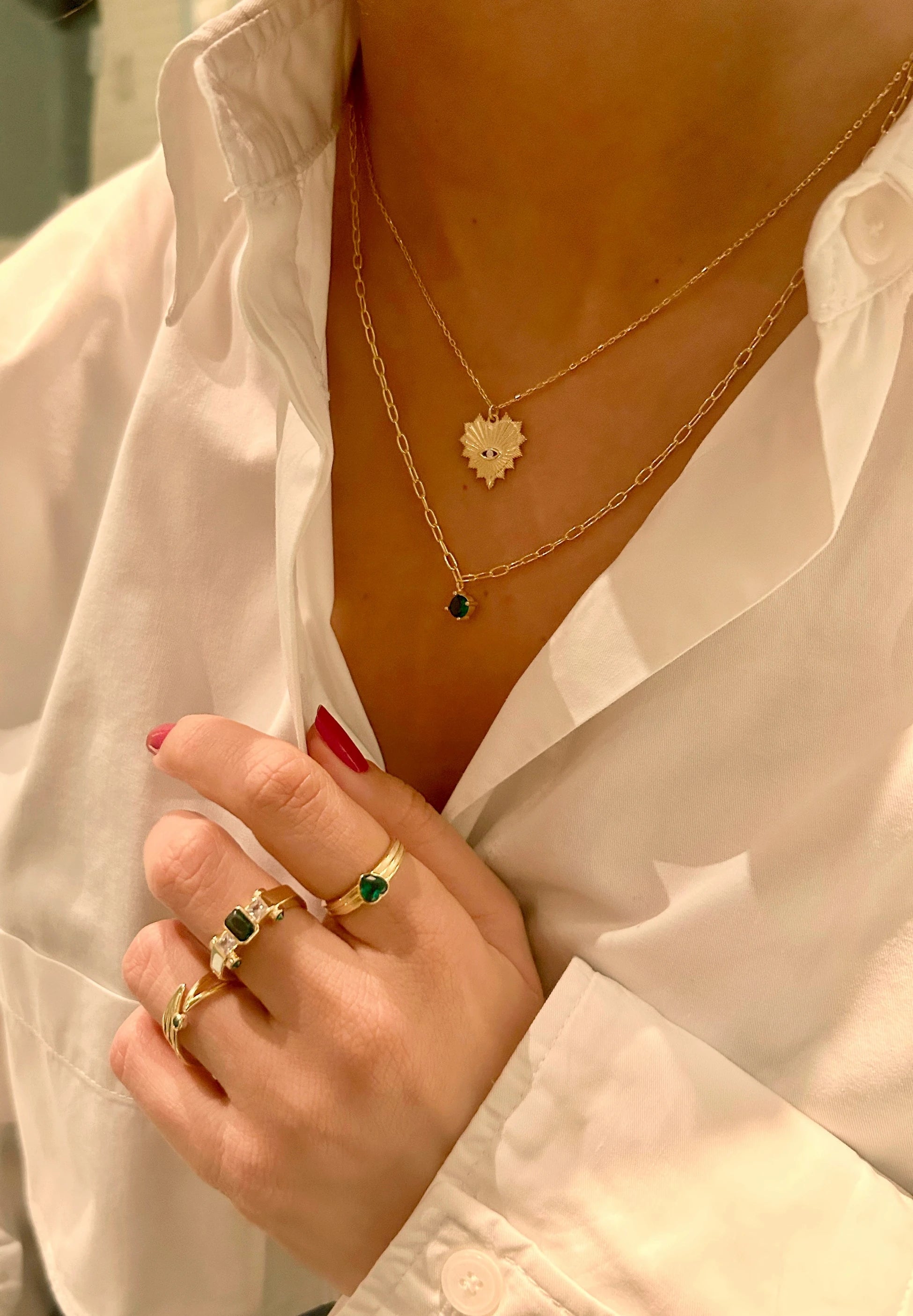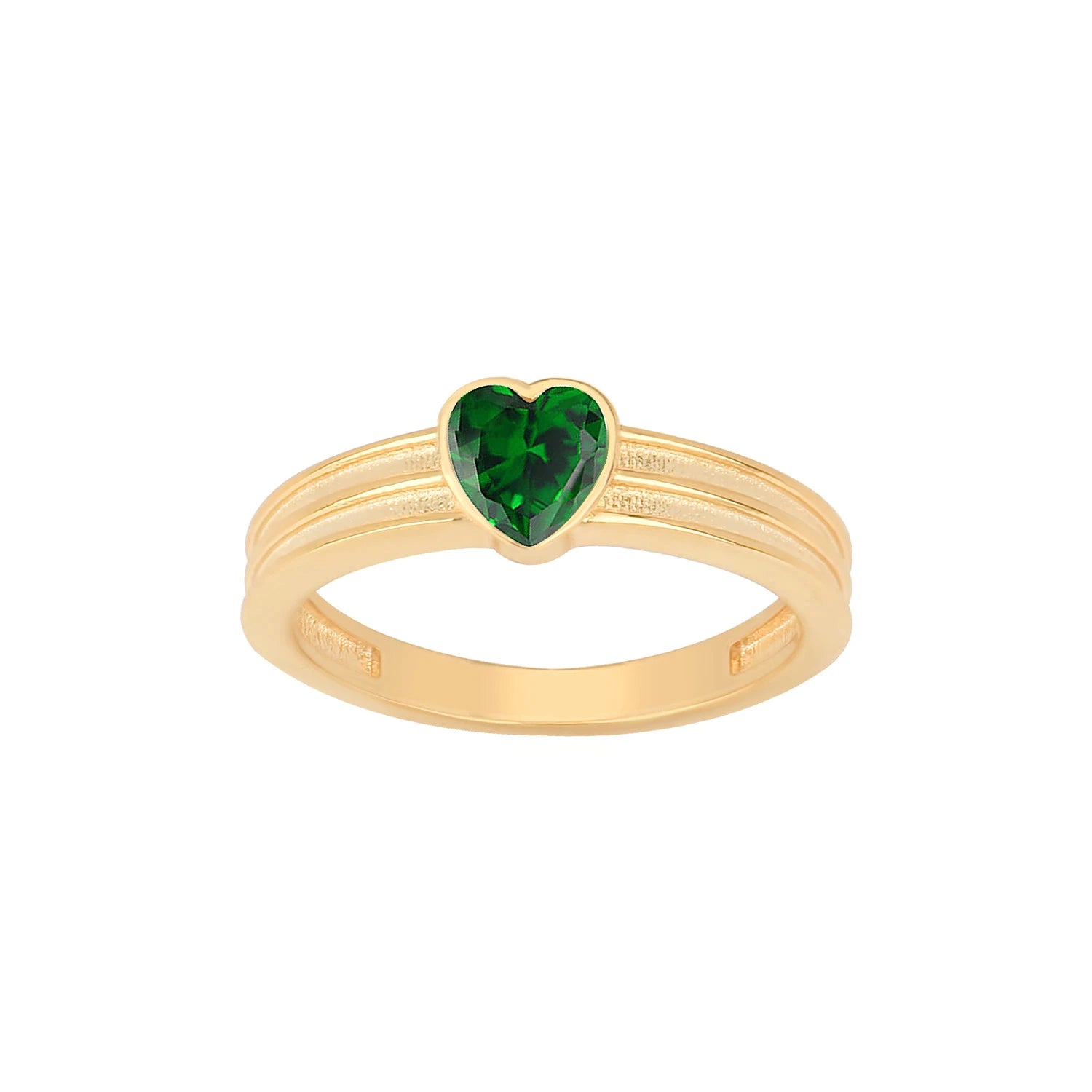 Pia&Co Mirno Yeşil Taşlı Altın Kaplama Gümüş Kalp Yüzük