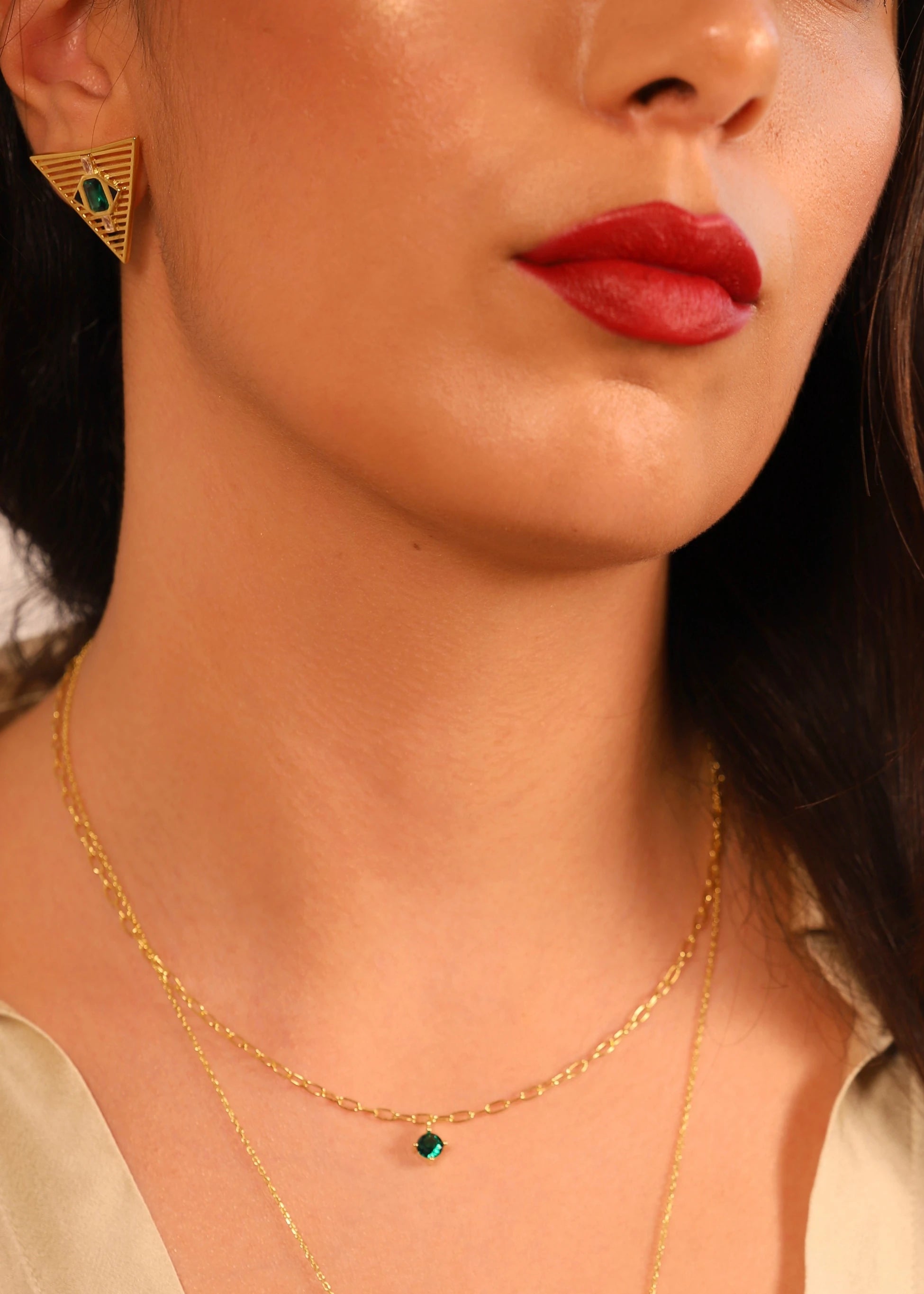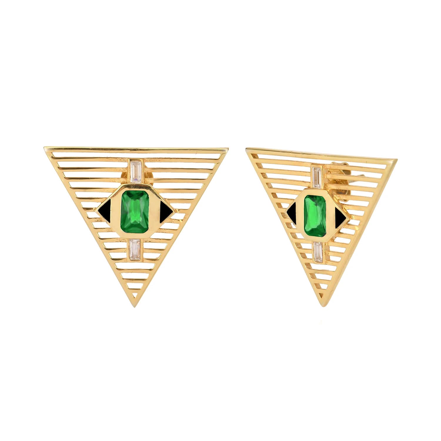 Pia&Co Tiga Yeşil Beyaz Zirkon Taşlı ve Siyah Mineli Altın Kaplama Gümüş Küpe