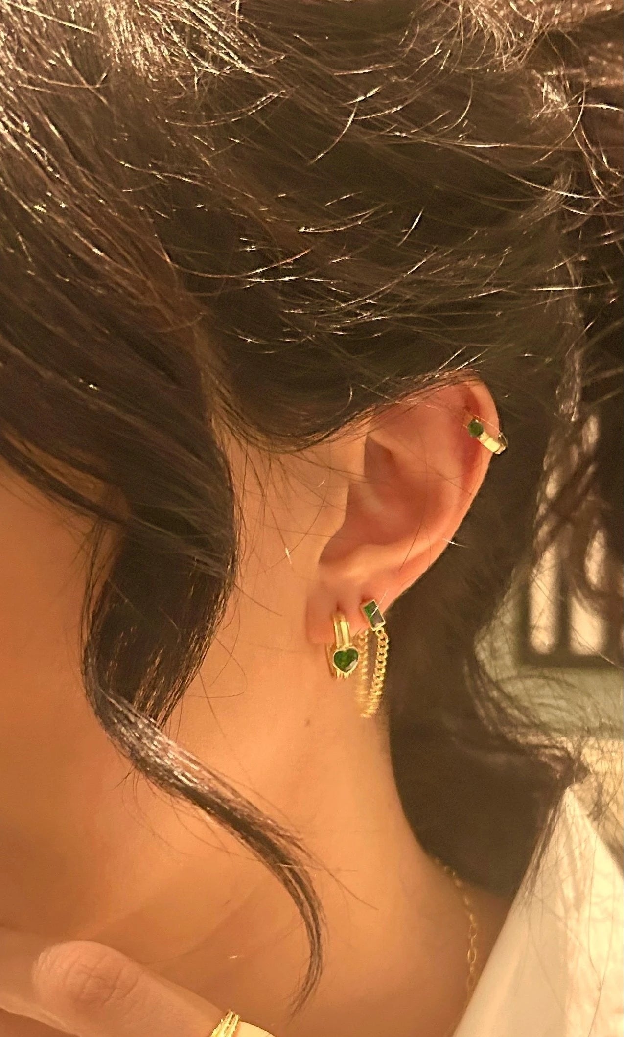 Pia&Co Petit Yeşil Zirkon Taşlı Altın Kaplama Gümüş Mini Halka Küpe