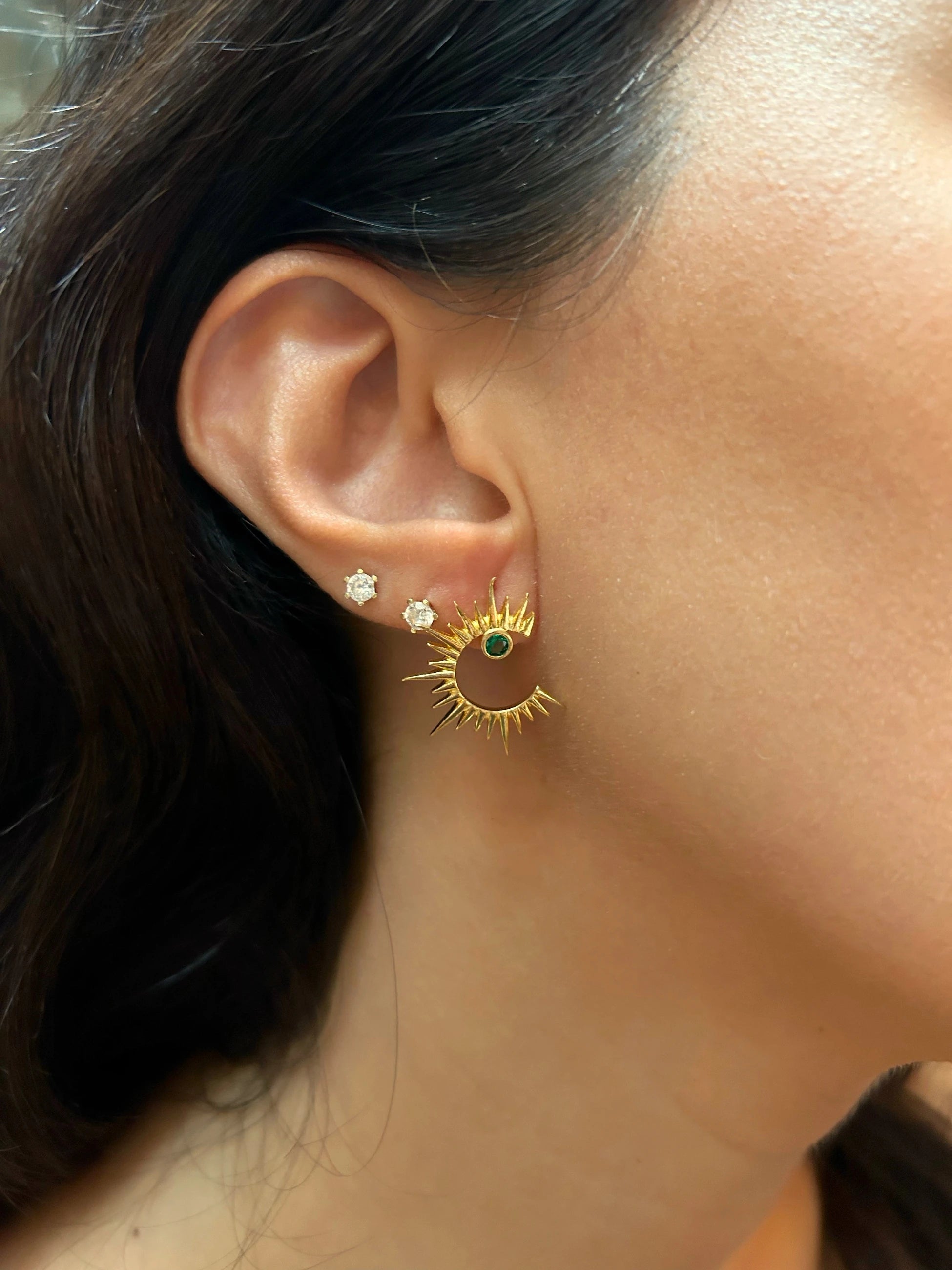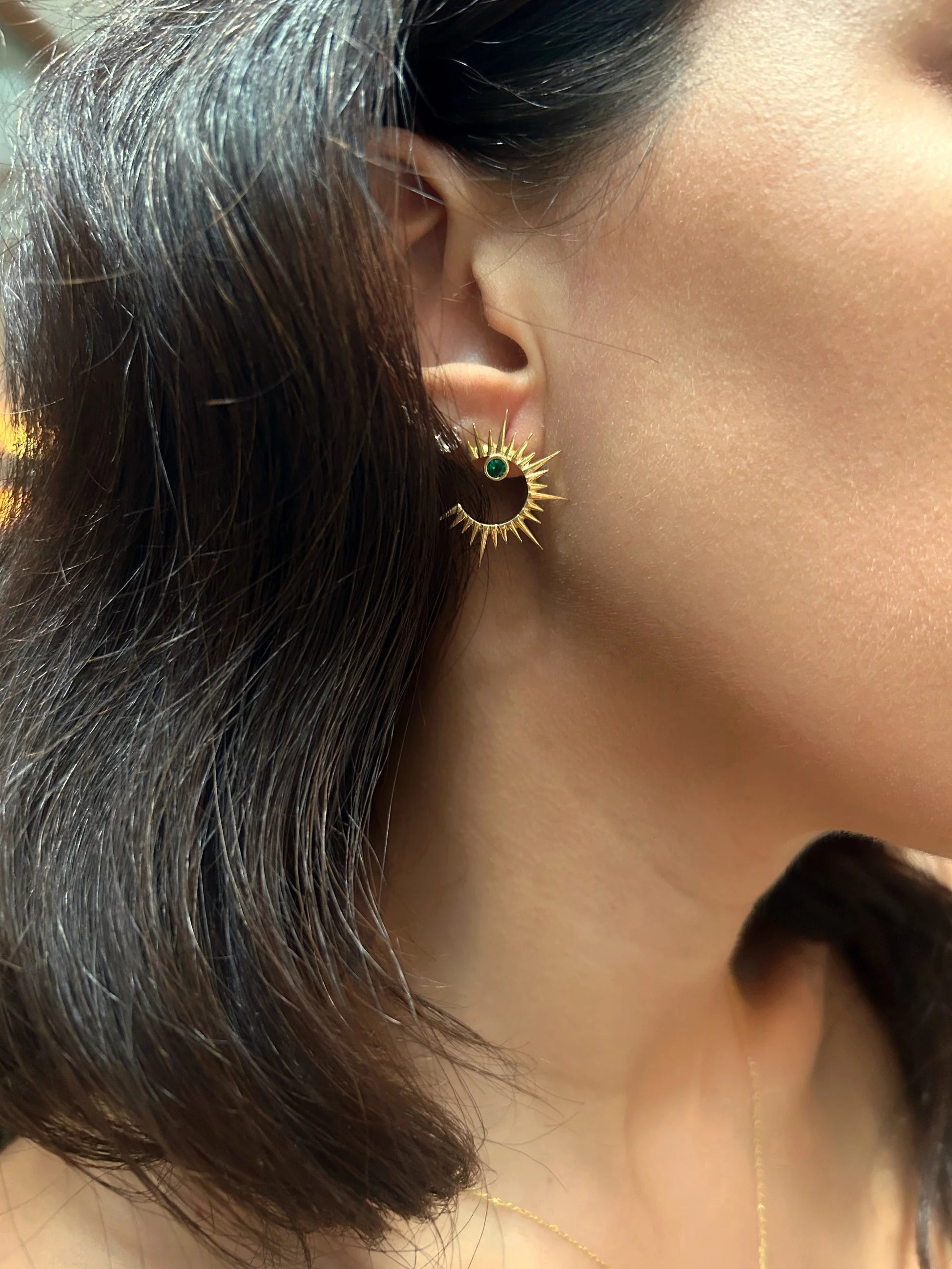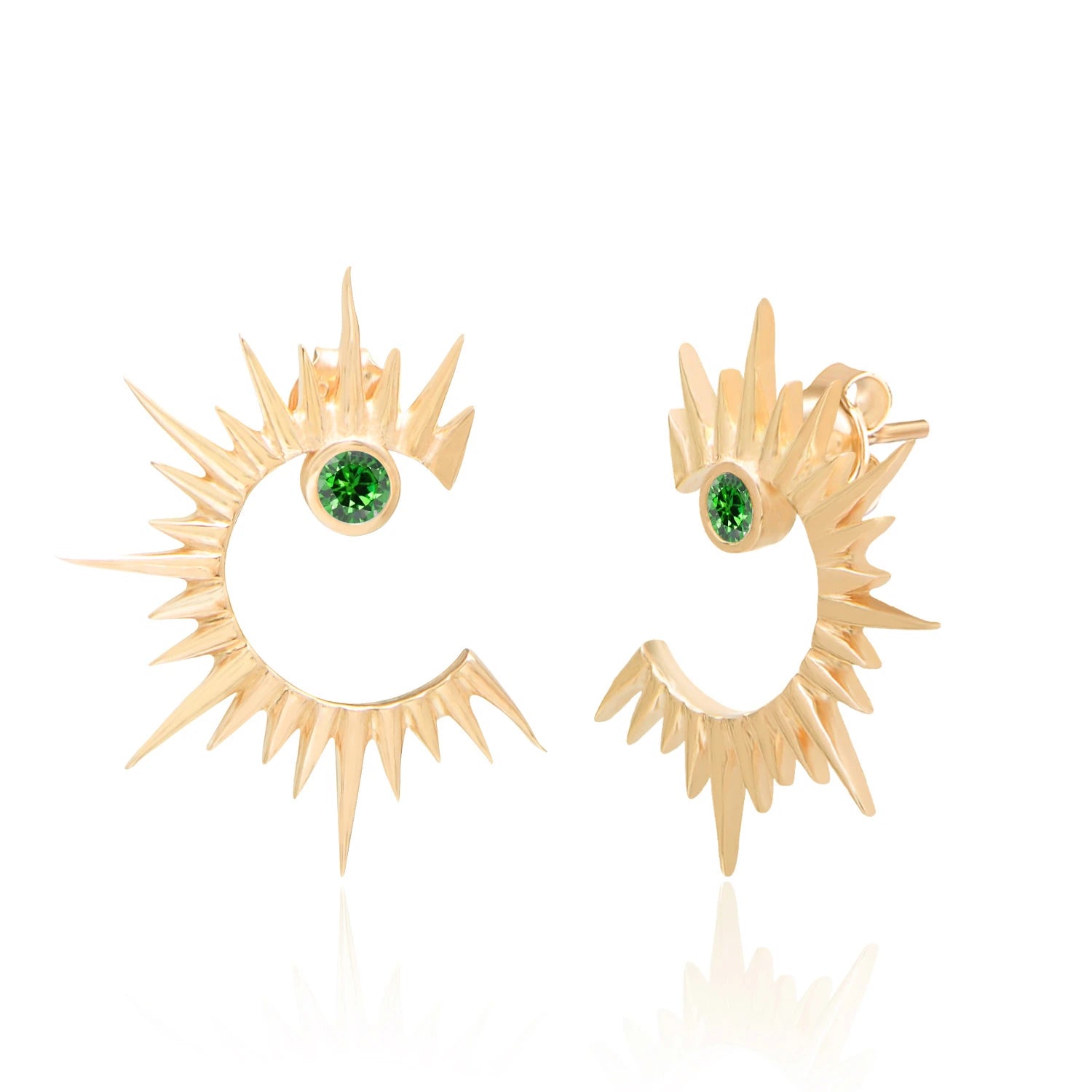 Pia&Co Solar Yeşil Zirkon Taşlı Altın Kaplama Gümüş Güneş Küpe
