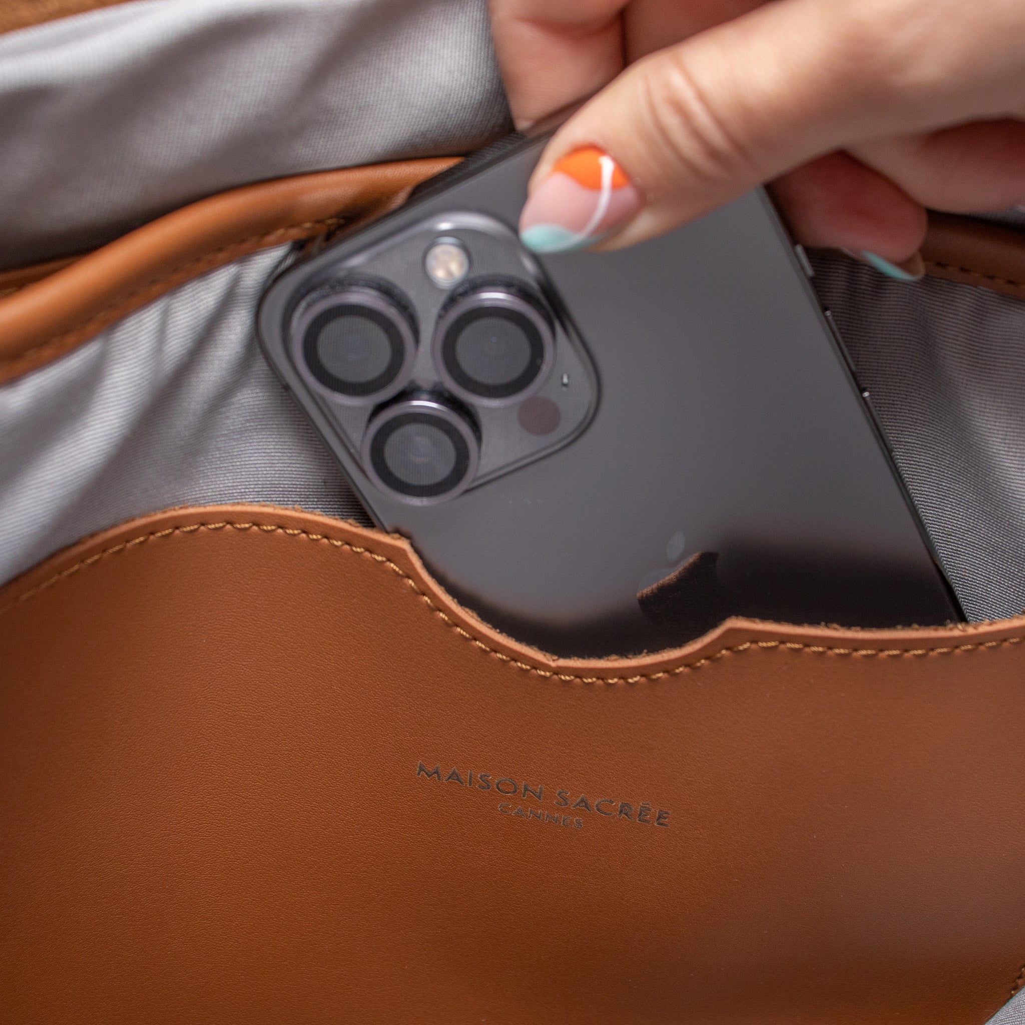 - Ön tarafta suni deri 'Maison Sacrée' etiketi.