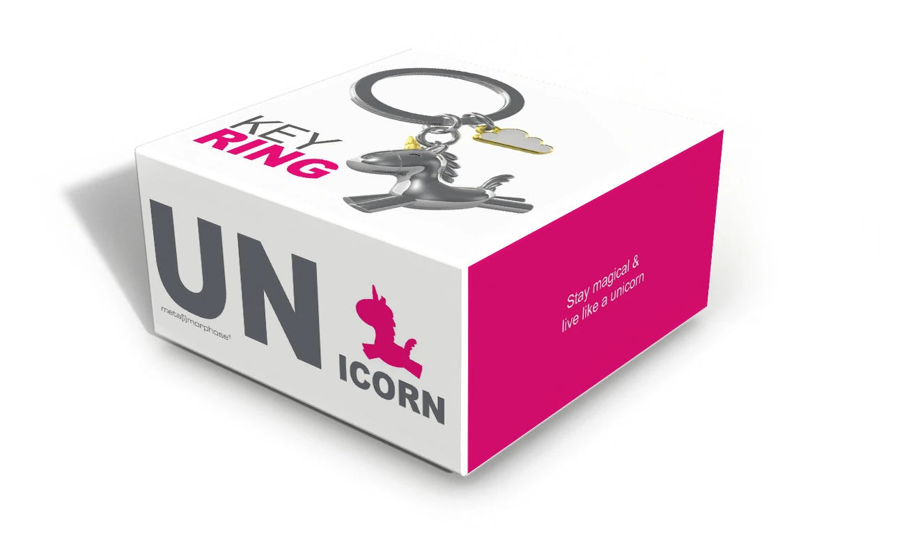 Metalmorphose® altın boynuzlu Unicorn beyaz bulut detaylı anahtarlık - Özel Kutu Ambalaj - Tescilli tasarım