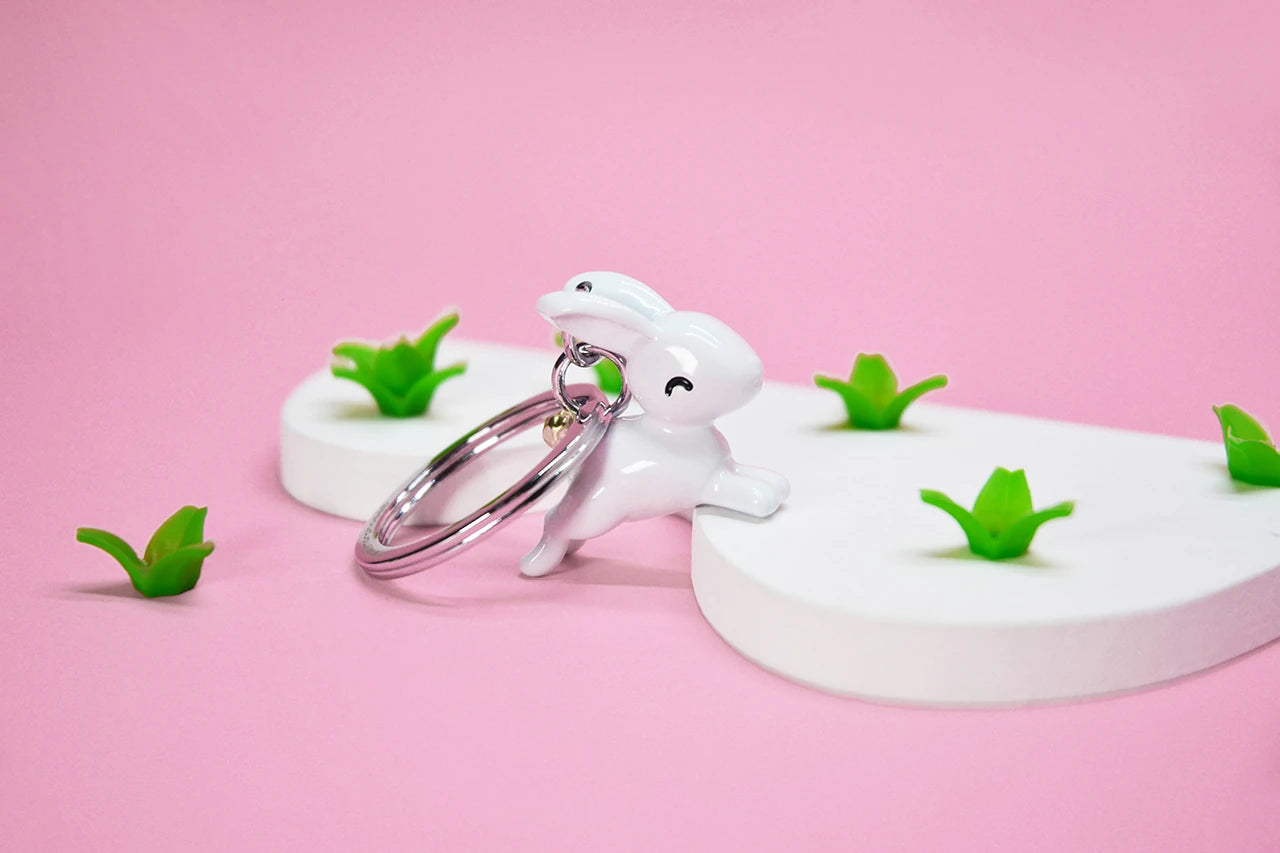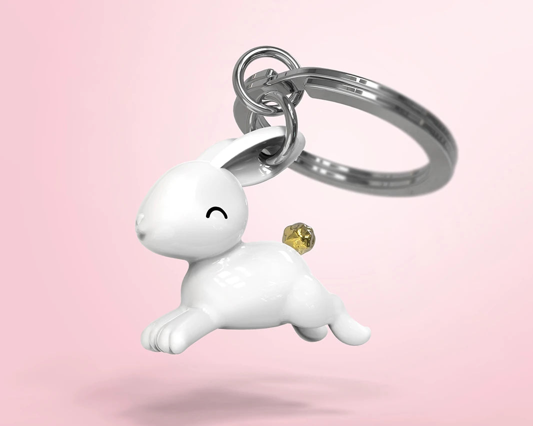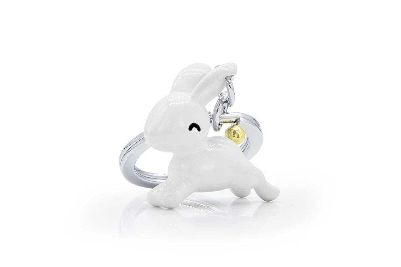 Meta [l] morphose® anahtarlık - 35mm çelik halka Tasarım/telif hakları tescillenmiştir. Vectorbox Uçan tavşan anahtarlık - 35mm çelik halka - Beyaz boya + parlak altın kuyruk