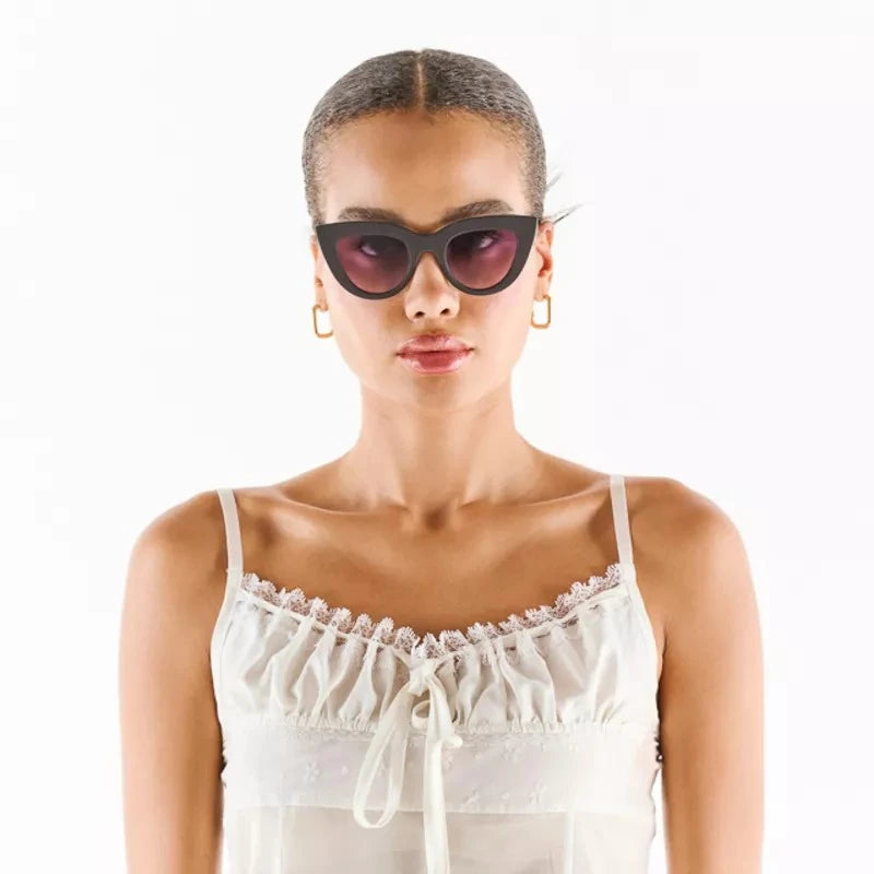 Claudia, siyah 'Kedi Gözü' çerçeveli, koyu renk geçişli lenslere sahip bir kadın güneş gözlüğü modelidir ve UV 400 korumalı kategori 3 ışık filtreli lenslerle (geçirgenlik %8 - %18) ilgili Avrupa standartlarını karşılar.Degrade mercekler, merceğin üst kısmındaki koyu rengin, merceğin alt kısmına doğru daha açık bir renge dönüşmesiyle karakterize edilir. Degrade camlara sahip güneş gözlükleri sürüş için oldukça uygundur, daha hafif kısımdan gösterge paneline rahatlıkla bakabilirsiniz, camın üst yarısı ise sizi parlamadan korur!Yumuşak dokunuşlu güneş gözlüğüUV koruyucu LensYumuşak köşeli siyah çerçeveli, koyu renk geçişli merceklere sahip, UV 400 korumalı 3 ışık filtreli merceklerle (geçirgenlik %8 - %18) ilgili Avrupa standartlarını karşılayan uniseks bir gözlük modelidir.TEMİZLİK: Nemli yumuşak, temiz bir bezle kurulayın. Solvent kullanmaktan kaçının. Çerçeve Boyutu: 14,9 cm Lens Boyutu: 4,1 x 5 cm Köprü: 2,3 cm Sap Uzunluğu: 14 cmKauçuk Kaplamalı Polikarmonat