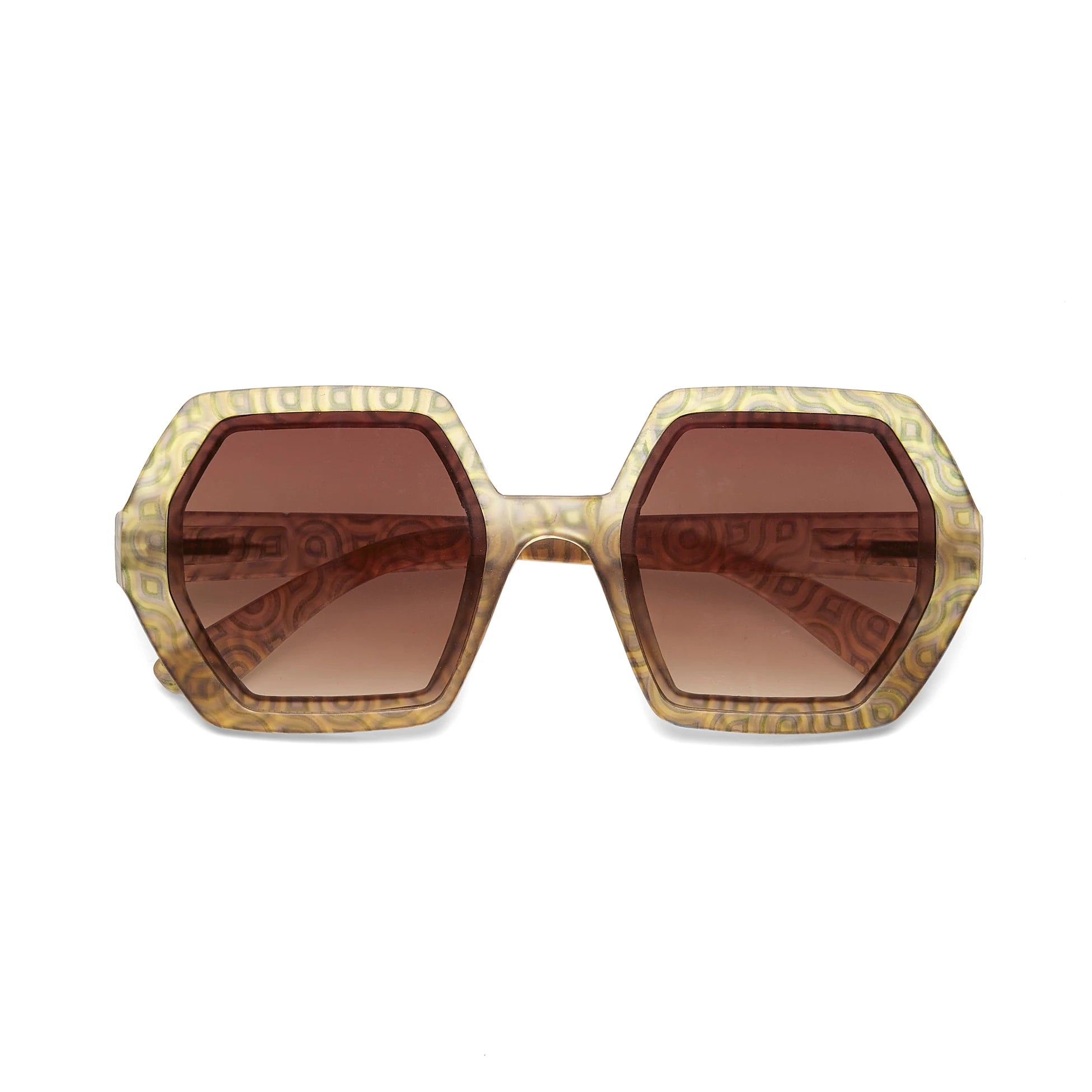 EMMA, yumuşak dokunuşlu çerçeveye ve üst üste binen merceklere sahip, önceden birleştirilmiş altıgen bir güneş gözlüğüdür.Degrade mercekler, merceğin üst kısmındaki koyu rengin, merceğin alt kısmına doğru daha açık bir renge dönüşmesiyle karakterize edilir. Degrade camlara sahip güneş gözlükleri sürüş için oldukça uygundur, daha hafif kısımdan gösterge paneline rahatlıkla bakabilirsiniz, camın üst yarısı ise sizi parlamadan korur!Okkia'nın şık ve uygun fiyatlı İtalyan güneş gözlükleri, hafiflikleri ve yumuşak hissi veren çerçeveleri sayesinde son derece rahattır. Her yüze kolayca uyum sağlayacak şekilde tasarlanmış olup, uzun süre takmanıza olanak sağlar.UV 400 korumalı kategori 3 ışık filtreli lensler (%8 - %18 geçirgenlik) ile ilgili Avrupa standartlarını karşılar.TEMİZLİK: Nemli yumuşak, temiz bir bezle kurulayın. Solvent kullanmaktan kaçının. Çerçeve Boyutu: 14,6 cm Lens Boyutu: 4,8 x 4,8 cm Köprü: 2,3 cm Sap Uzunluğu: 14 cmKauçuk Kaplamalı Polikarmonat
