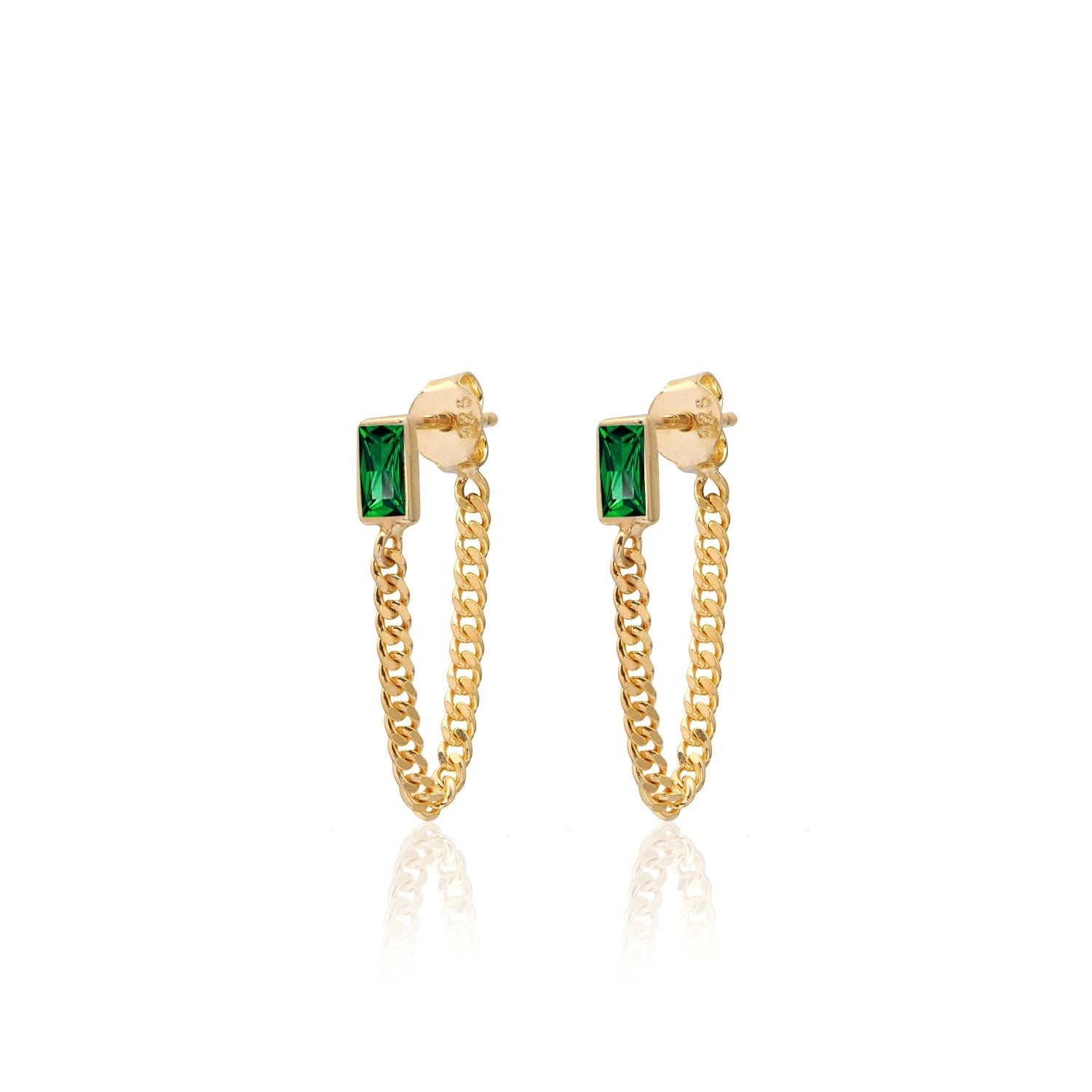 Pia&Co Cadea Yeşil Taşlı Zincir Gümüş Küpe